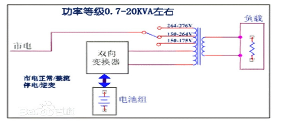 أثناء تشغيل المرافق العادية، فإنه يوفر طاقة مرافق محسنة للأحمال من خلال تنظيم محول ذكي لتغيير الصنبور، بينما يعمل العاكس في الوضع العكسي لشحن البطارية. أثناء انقطاع التيار الكهربائي، يتم تشغيل الأحمال بالكامل بواسطة طاقة البطارية من خلال العاكس. يعمل هذا المحول ثنائي الاتجاه كعاكس وشاحن.