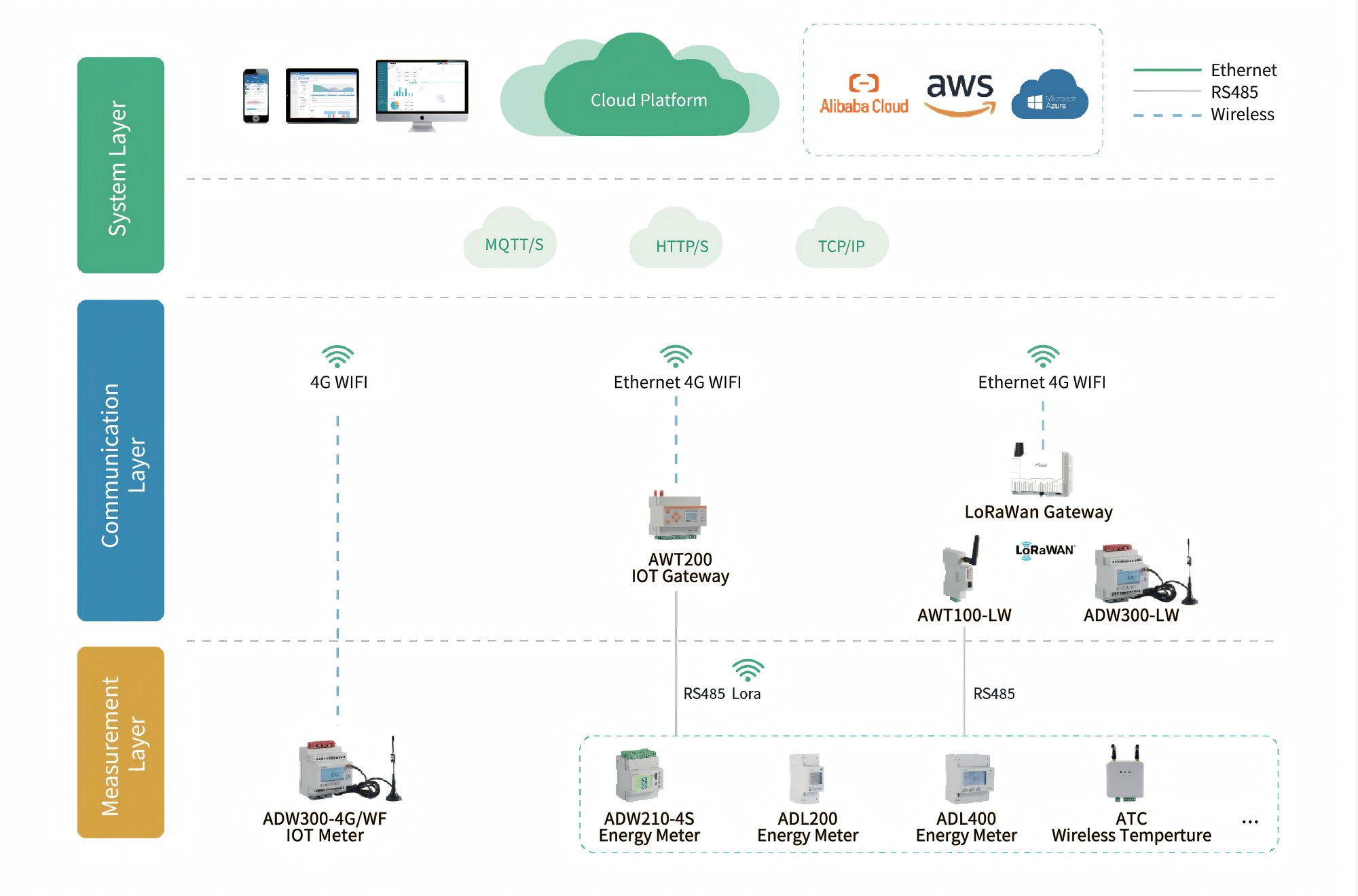 بفضل شريحة المعالجة الدقيقة القوية وتقنية المراقبة المدمجة، يضمن AWT100 أداءً موثوقًا ومستقرًا. يمكنه الاتصال بسهولة بمقاييس الطاقة، وRTUs، وPLCs، وأجهزة الكمبيوتر الصناعية، وما إلى ذلك، ويدعم بروتوكول النقل الشفاف، وبروتوكول MQTT، وغيرها. يمكن تطبيقه على نطاق واسع في المباني الذكية، والأتمتة الصناعية، وإدارة الطاقة، والمزيد، فهو يسهل التحول الرقمي للمعدات التقليدية ويعزز مستوى الذكاء للأنظمة المختلفة.