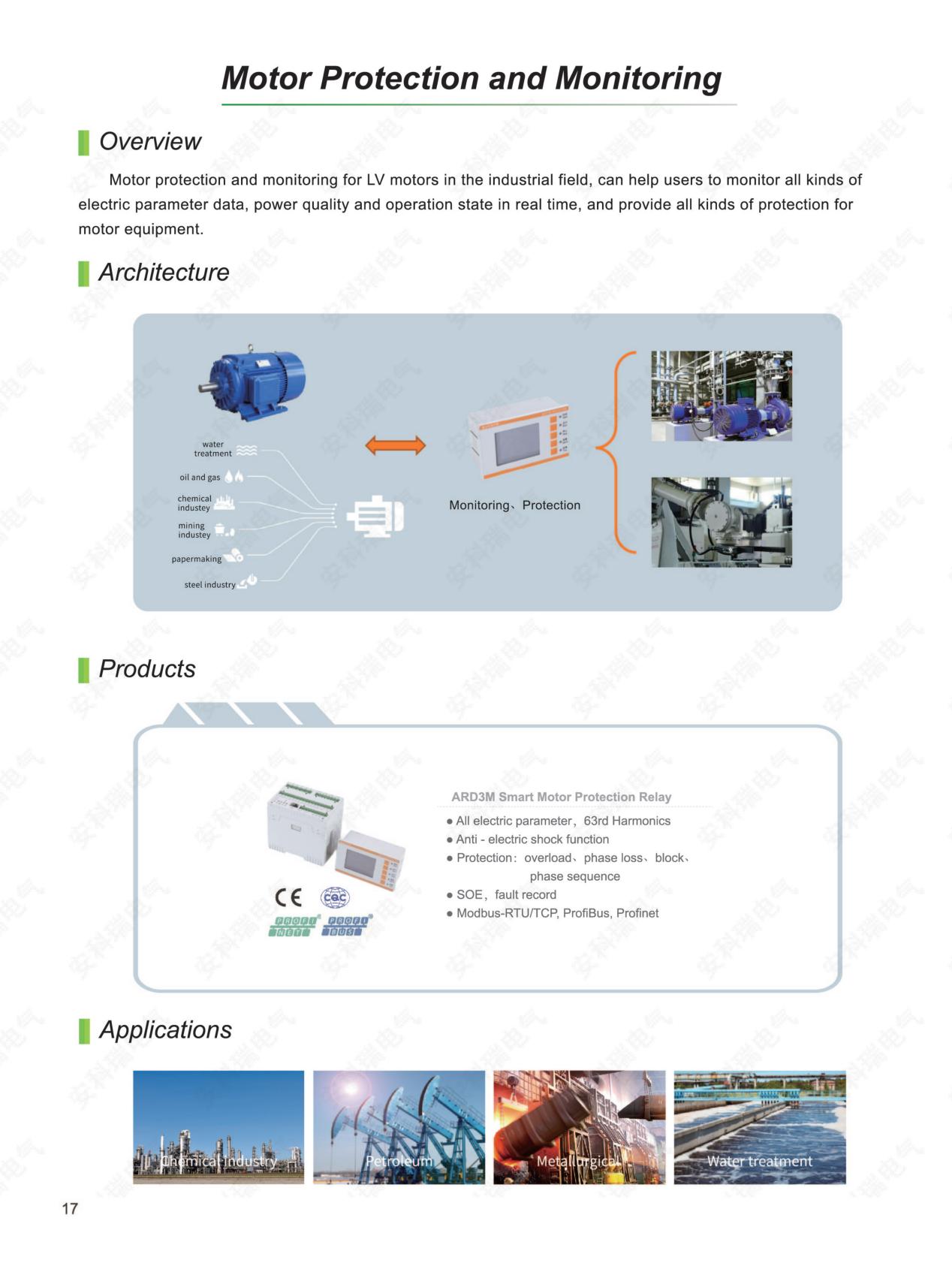 Acrel ARD3M عبارة عن وحدة تحكم شاملة لحماية المحرك مصممة للمحركات ذات الجهد المنخفض ذات الفولتية المقدرة التي تصل إلى AC380V / 690V. ويتميز بتسجيل الأحداث، وحماية التسرب، وDI/DO قابل للبرمجة للتحكم المرن. يدعم الجهاز وظيفة مقاومة الاهتزاز لضمان التشغيل المستقر ويتضمن مخرجات تناظرية لأغراض المراقبة. بفضل آليات الحماية القوية وخيارات الاتصال المتنوعة، يعد ARD3M مثاليًا لمختلف التطبيقات الصناعية، مما يضمن إدارة موثوقة للمحركات وتكامل فعال للنظام.